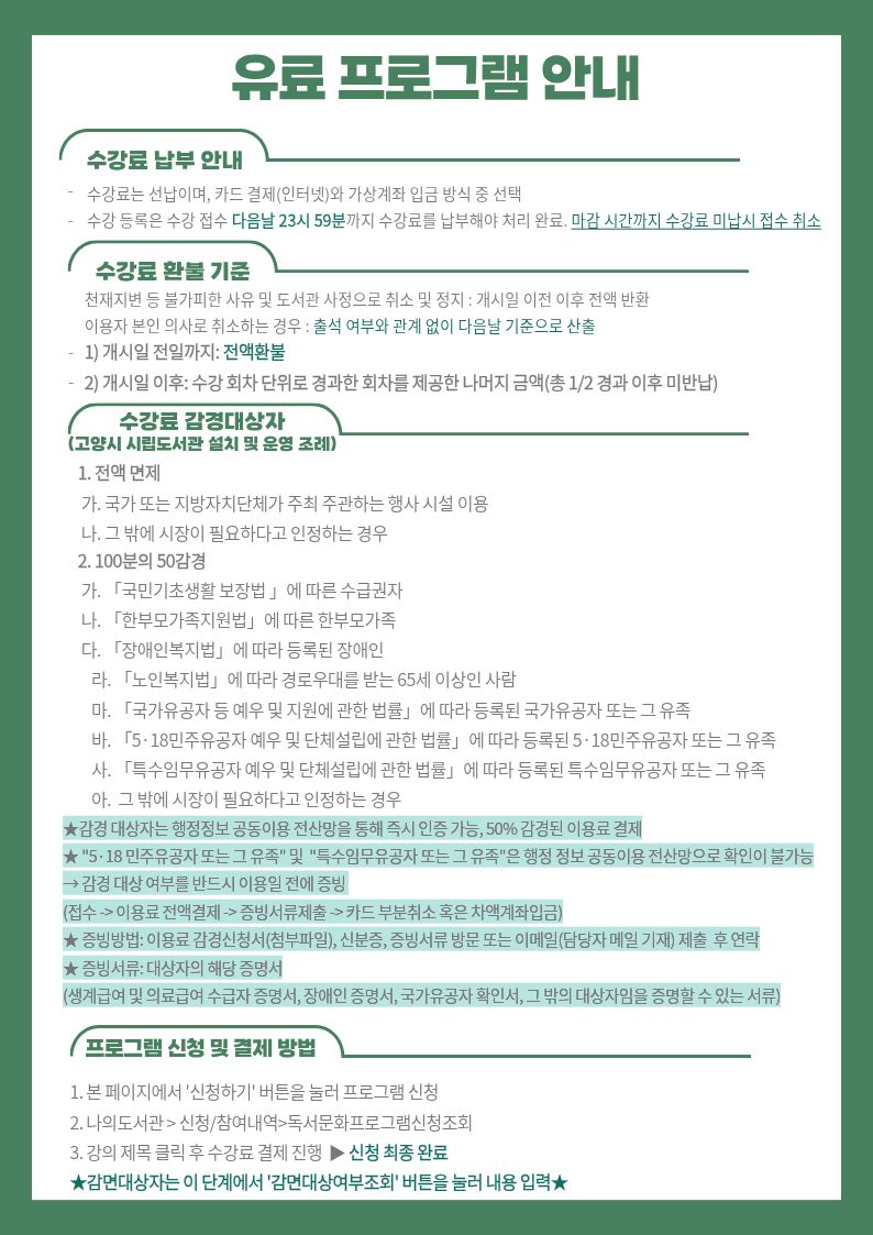수강료 감경 대상자 안내(고양시 시립도서관 설치 및 운영 조례)