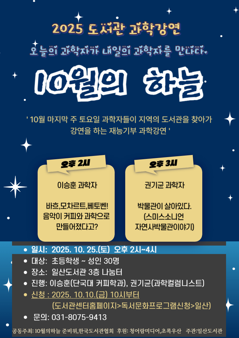 *신청: 2025. 10. 10.(토) 오전 10:00~ 고양시도서관센터 홈페이지 선착순 신청