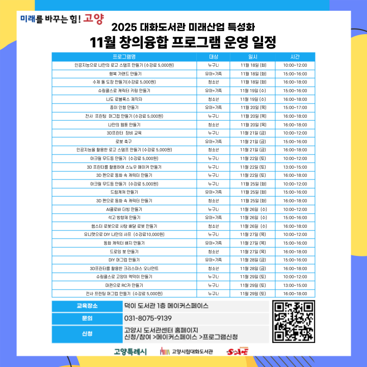 대화도서관 미래산업 특성화 11월 창의융합 프로그램 안내