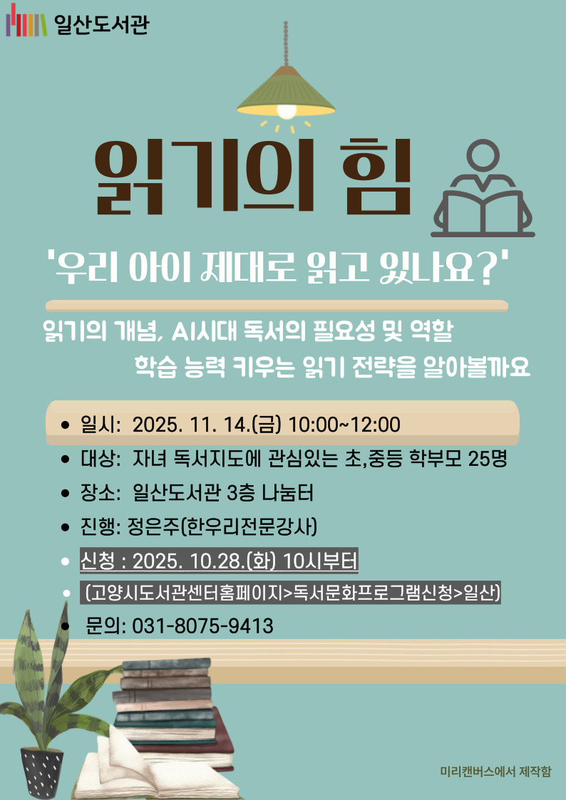 *내용 : 읽기의 시대, AI시대 독서의 필요성과 역할, 학습 능력을 키우는 읽기 전략을 알아봅니다.