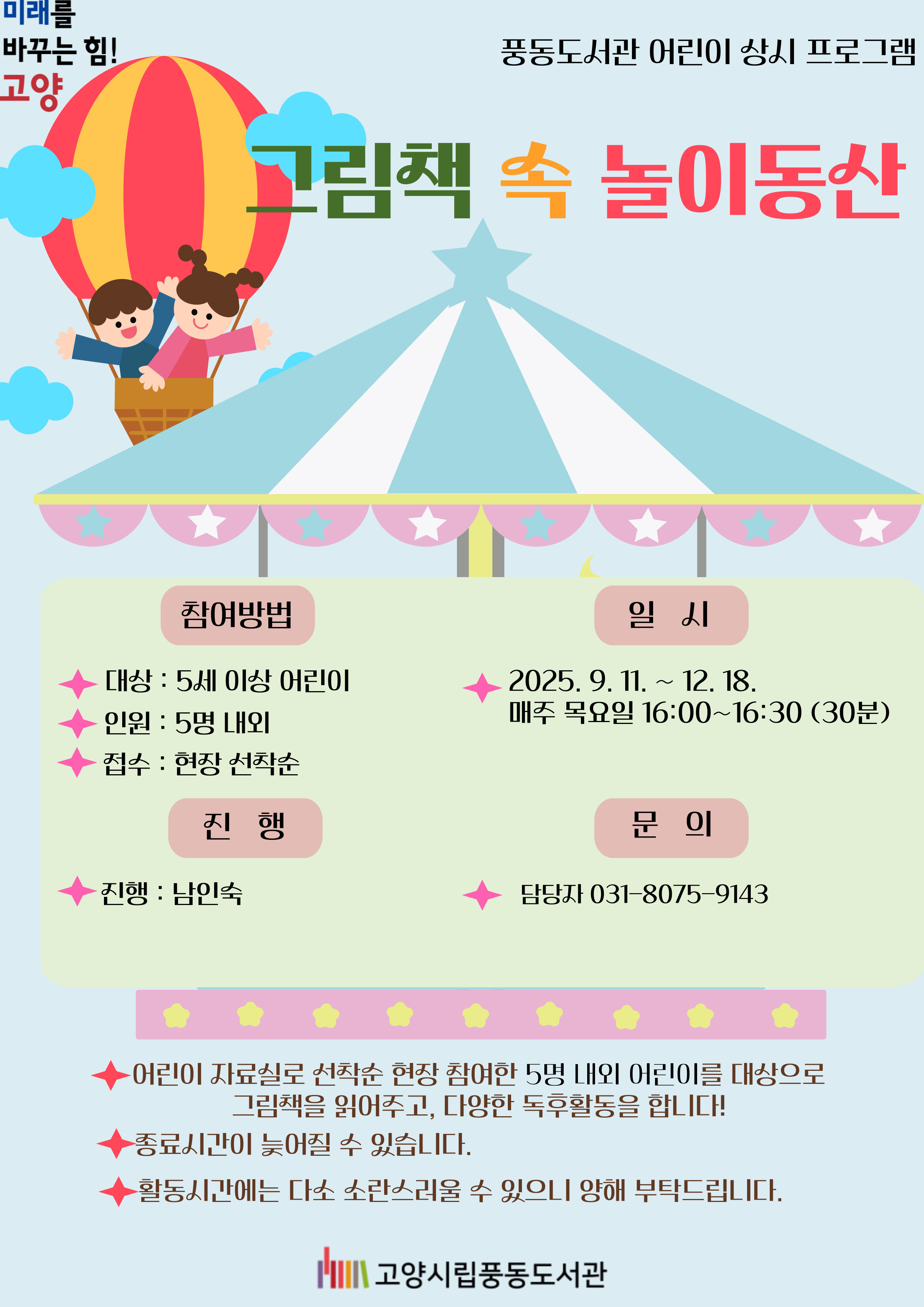 풍동도서관 B동 2층 어린이자료실로 방문하여