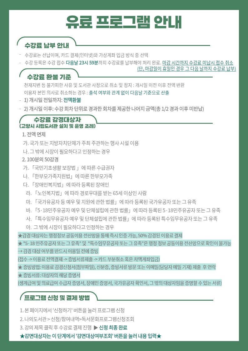 ★ 수강료 감경 대상자 안내(고양시 시립도서관 설치 및 운영 조례)