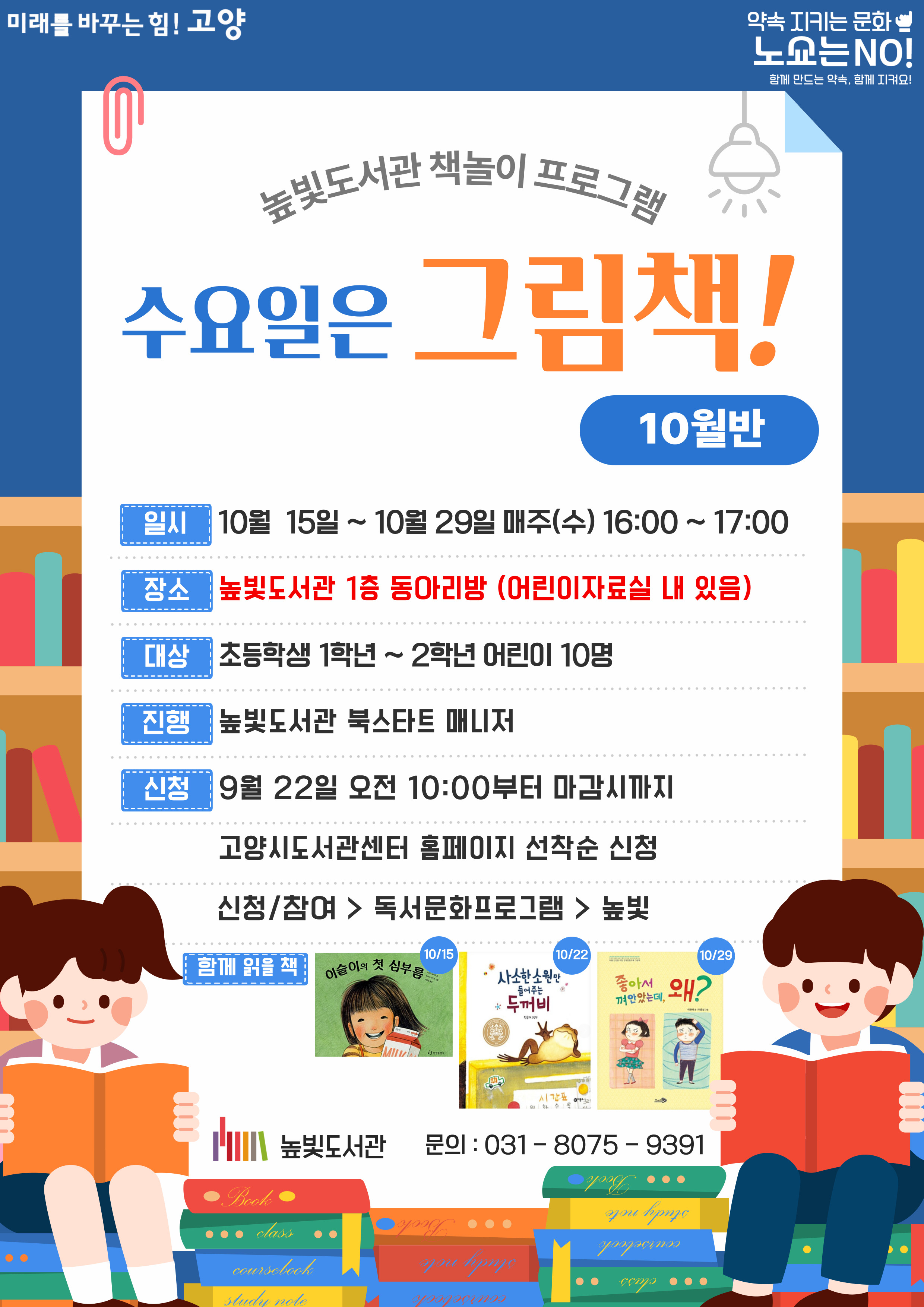 신청 : 9월 22일 월요일 10:00 ~ 신청인원 마감시 도서관센터 홈페이지 선착순 신청 ※ 자녀분의 아이디로 신청해주세요