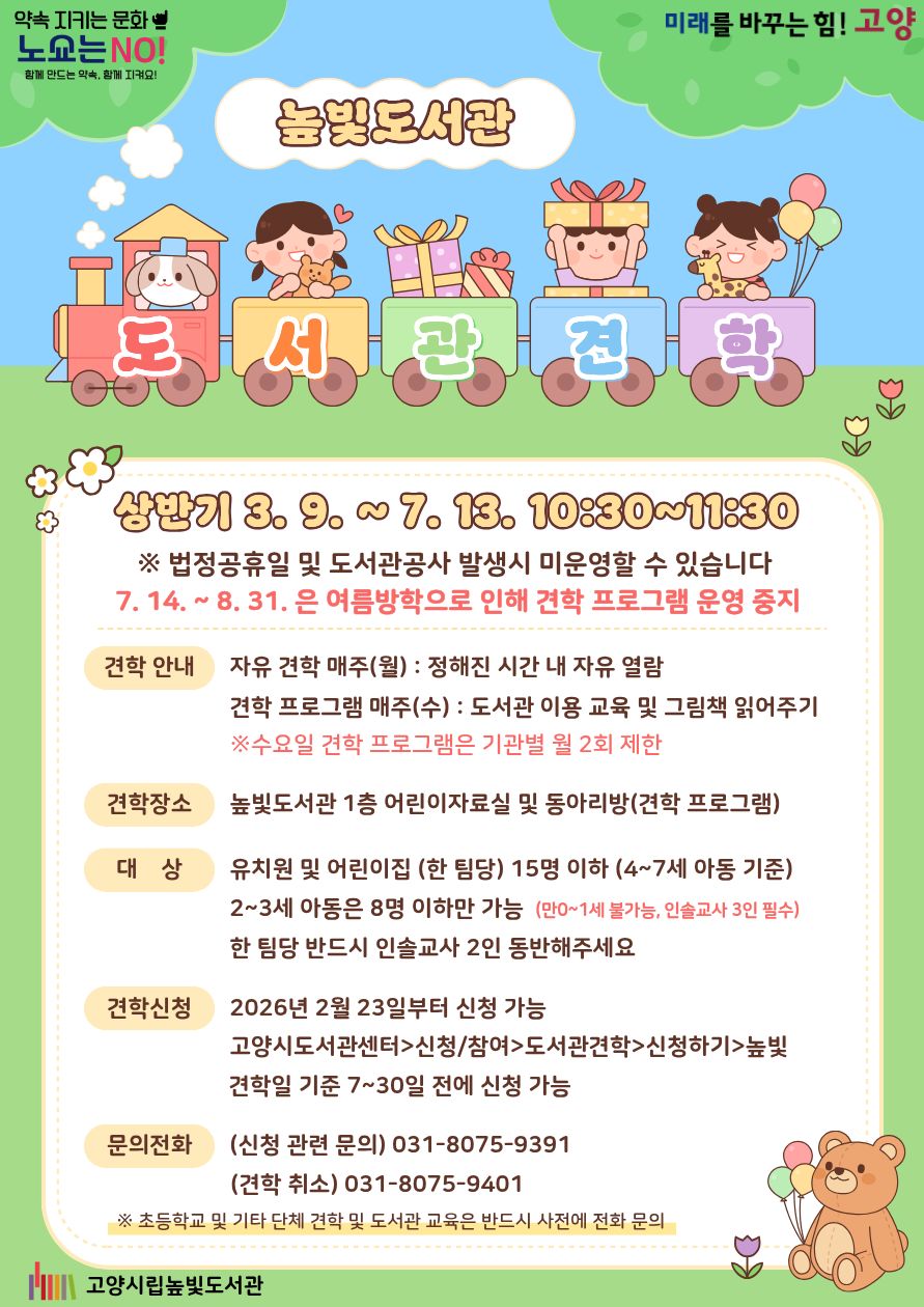 ※ 초·중학교 및 기타 단체 견학 및 도서관 이용교육은 반드시 사전에 031-087-9391로 전화 문의