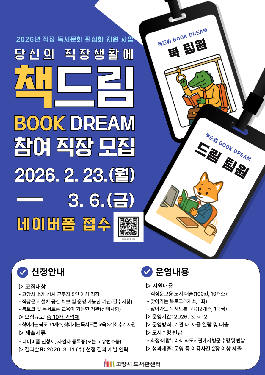 [2026년] 고양시 도서관센터 직장 독서문화 활성화 사업 「책드림」 참여 신청서 - 네이버 폼