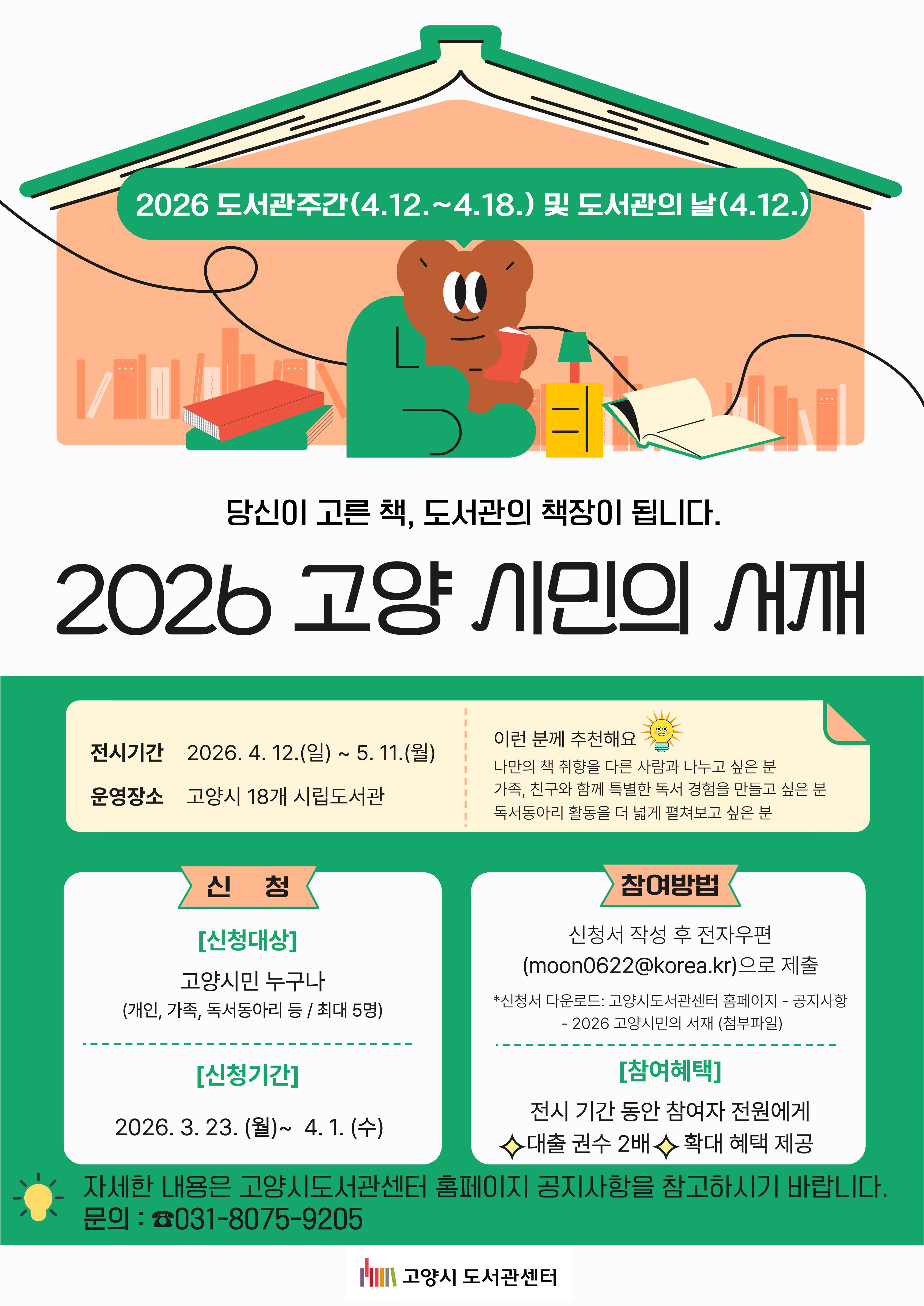 - 신청 대상 : 고양시민 누구나(개인, 가족, 독서동아리 등 / 최대 5명)