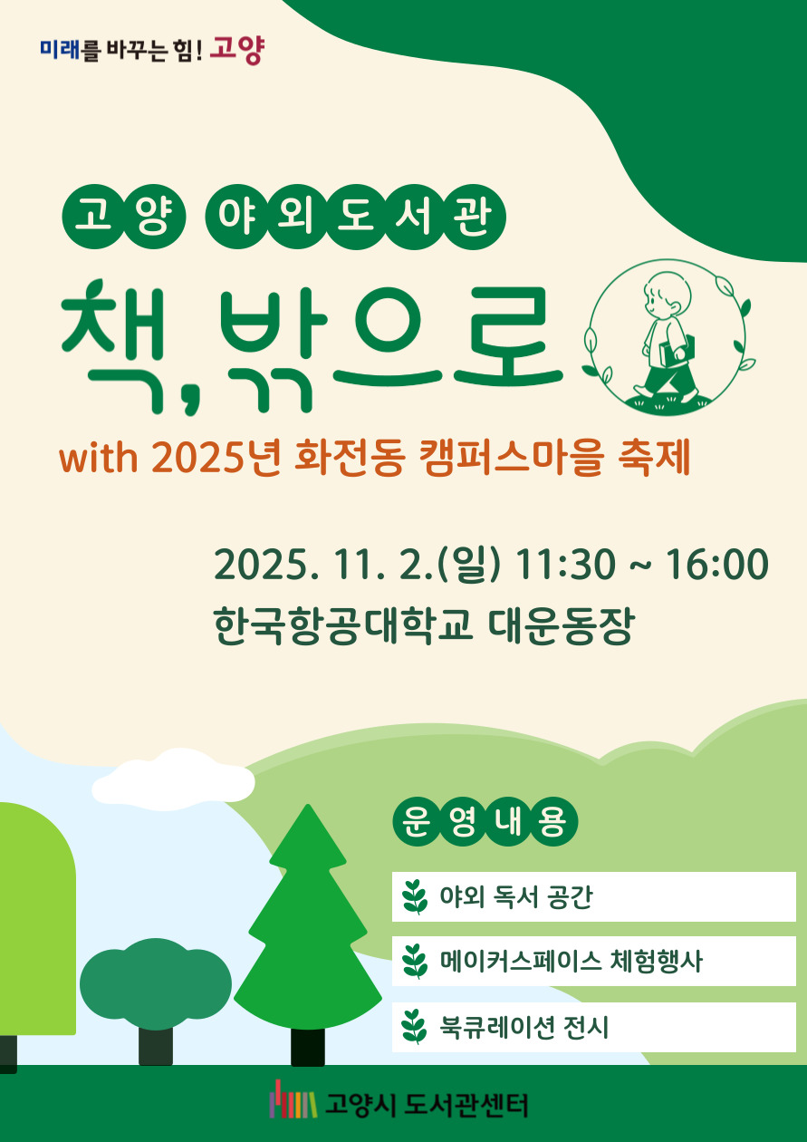 고양 야외도서관 「책, 밖으로」 운영 _11/2(일) 한국항공대학교 대운동장