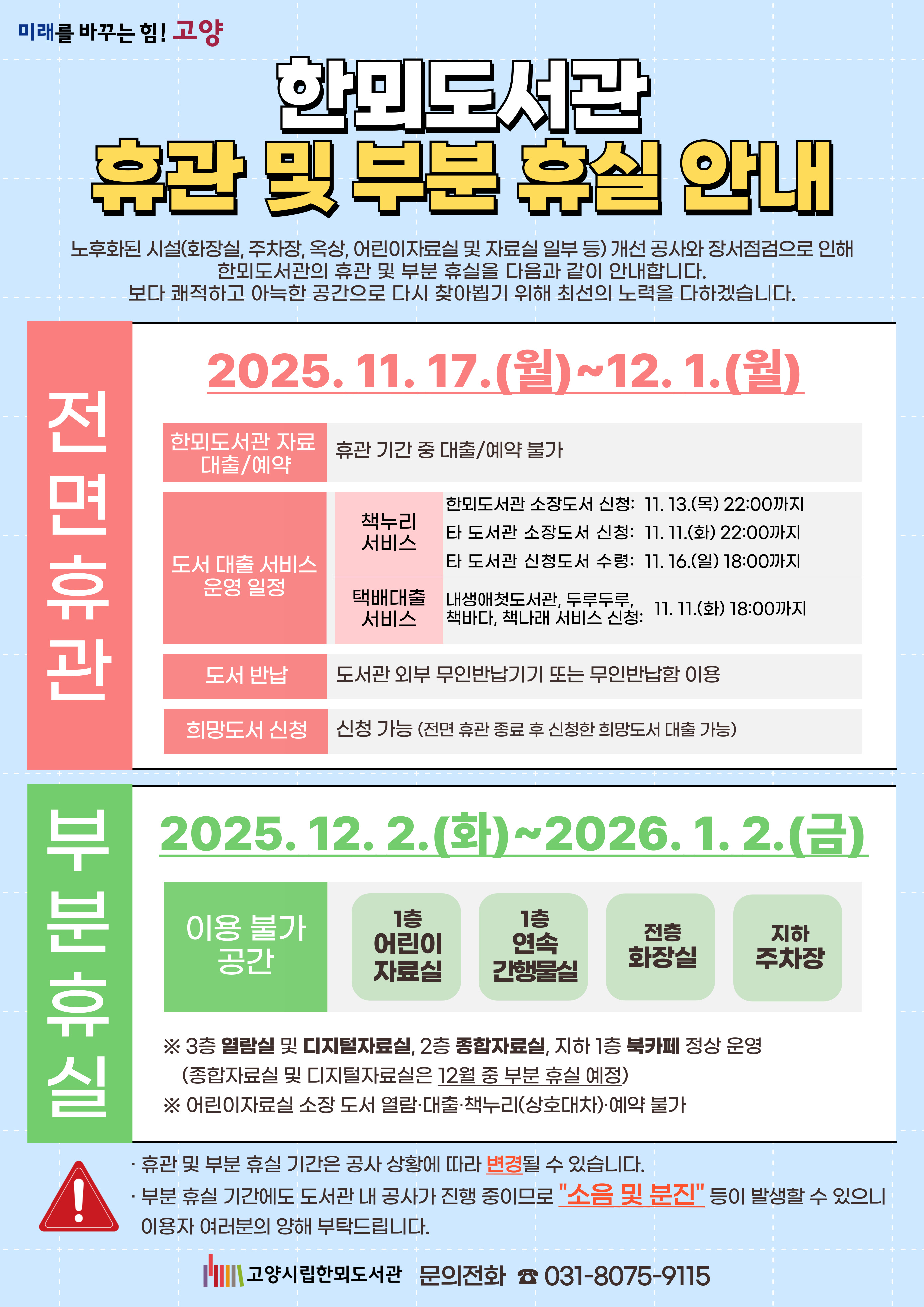 · 휴관 및 부분 휴실 기간은 공사 상황에 따라 변경될 수 있습니다.