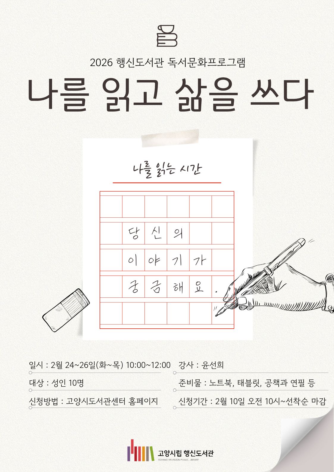□신청안내: 2026. 2. 10.(화) 오전 10시부터 도서관센터 홈페이지 선착순 신청