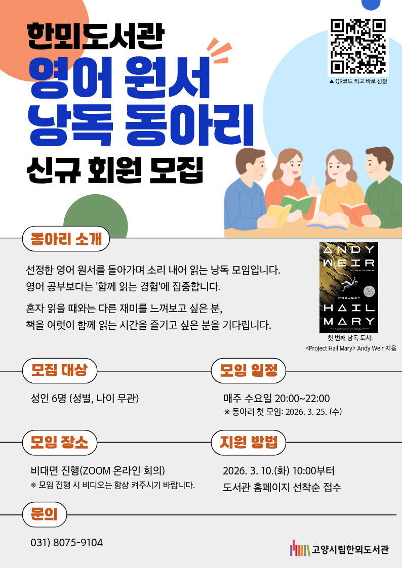 한뫼도서관 영어 원서 낭독 동아리 신규 회원 모집