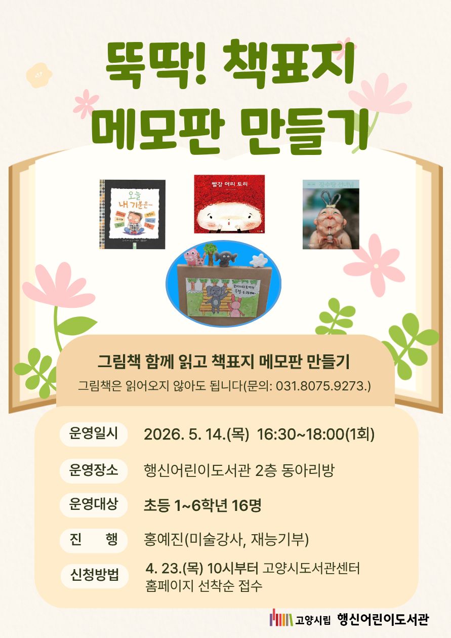 신청방법 4.23.(목) 10시부터 고양시도서관센터 홈페이지 선착순 신청